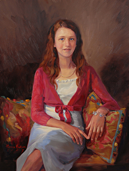 "I love this portrait, especially the manner of the hands and the pillows. Brdiget has beautiful, long, slender hands that Patrice noticed and took keen interest in while positioning the hands in the final portrait. The inclusion of her initials on the charm bracelet is an awesome subtle touch."